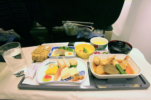 機内で JALの場合、機内では夕日を眺められる右側の席をお勧めする。成田便は充分に、関空便でもそれなりに楽しめる。