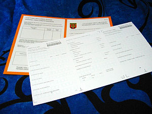 入国審査 機内で、入国審査用の書類と税関の申告書が配られるので、機内で書いておこう。SQで乗り継いだ場合、日本語を話す乗務員はいないので、書き方はガイドブック等で予習しておきたい。