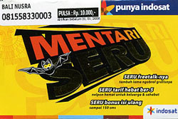 プロモで、特番をつけると日本に1分1000ルピアでかけられるインドサットのムンタリ。日本でいうとKDDIのような会社なので、その辺が安い理由かもしれない。右側のSIMは11桁の電話番号のSIM。インドネシアの携帯は今では12桁が一般的なため珍しい。
