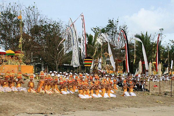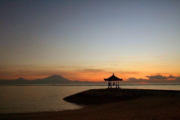 | 古くからのビーチリゾートながら、静けさも持ちかねており、長期滞在派も多い。東海岸になるので、サンライズはおすすめ。遠く彼方にはアグン山を望むことも出来る。お隣りのスララガン島は白砂のビーチが続き、地続きになっているので、車で行くことも出来る。3枚目の写真はサヌールで行われたオゴオゴのひとコマ。 |
