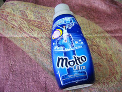 ご存じモルト。インドネシアの香りと言ってもイイほど有名な人気がありますよね。 この写真の柔軟剤タイプと柔軟剤から柔軟効果を取ったペワンギなどがあります。右側のウルトラは2倍濃縮タイプです。今までモルトをお試しでなくダウニーをお使いの方には、ぜひモルトの香りもおすすめです。